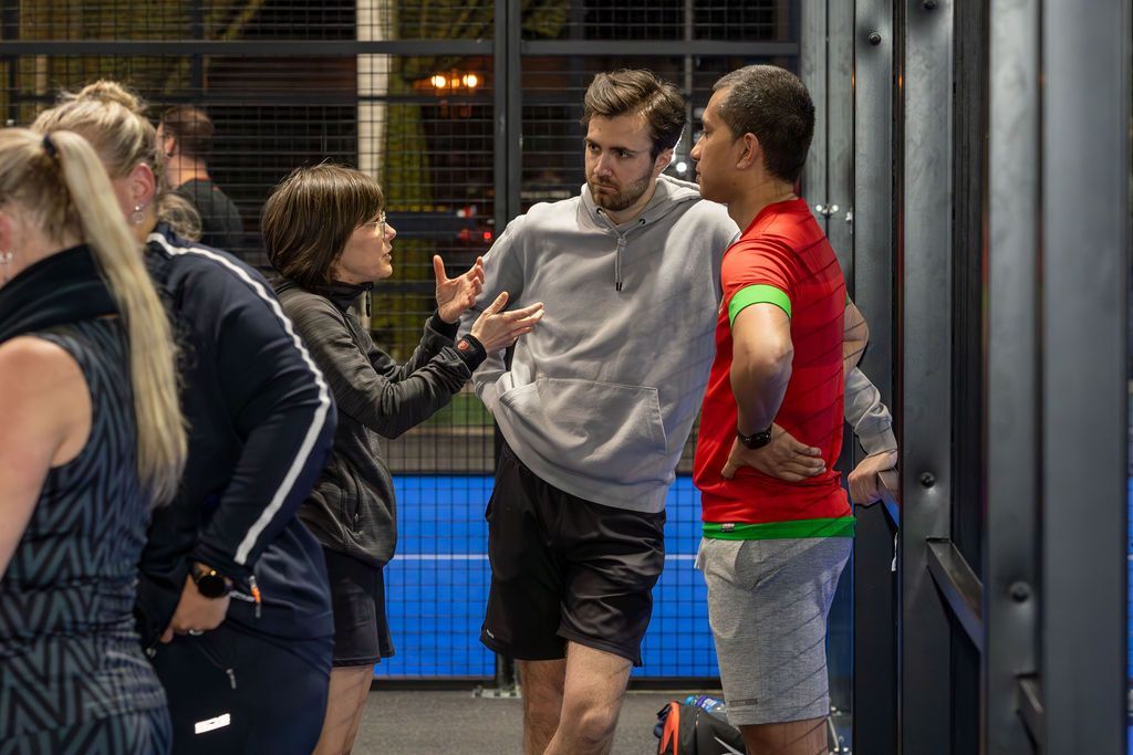 Op baan 1 werd het eerste uur een clinic gehouden voor de nieuwkomers, terwijl op de andere banen de wedstrijden van start gingen. Het was opnieuw genieten. We zagen mensen over de banen vliegen, enkels zien verzwikken en er werden smashes uitgedeeld waar Nadal nog wat van zou kunnen leren. Tussendoor werden er lekker biertjes en wijntjes gedronken. Met de kaassouflés nog in de mond, stonden sommige mensen de