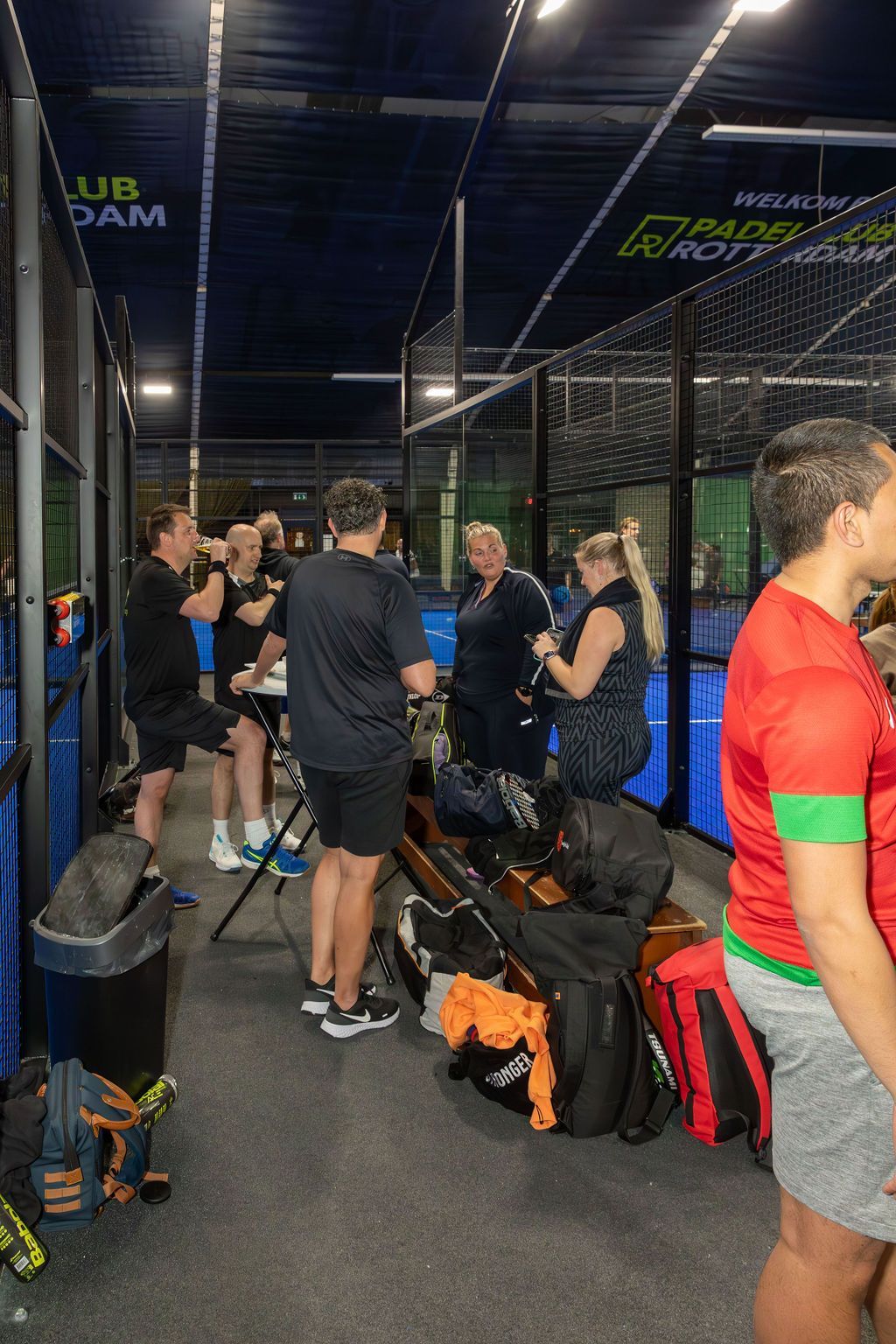 Dit jaar kozen we voor een andere club, met de voorkeur om binnen te spelen en opnieuw met gezellige horeca erbij. We kwamen uit bij de Padelclub in Rotterdam Terbregge. En dat bleek een goede keus te zijn! Wat een toplocatie! Met maar liefst 6 Padelbanen en geweldige horeca erbij.